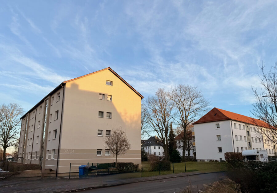 Das Mehrfamilienhaus, in welchem sich die Wohnung befindet, liegt im Stadtteil Eigenes Heim. Dank der besonderen, leicht erhöhten Lage bietet die Wohnanlage für jeden Geschmack das Richtige: idyllische Wohnungen direkt im Grünen oder urbane Wohnungen mit einmaligem Blick über die Dächer der Stadt sowie auf den nahen Wiesengrund.